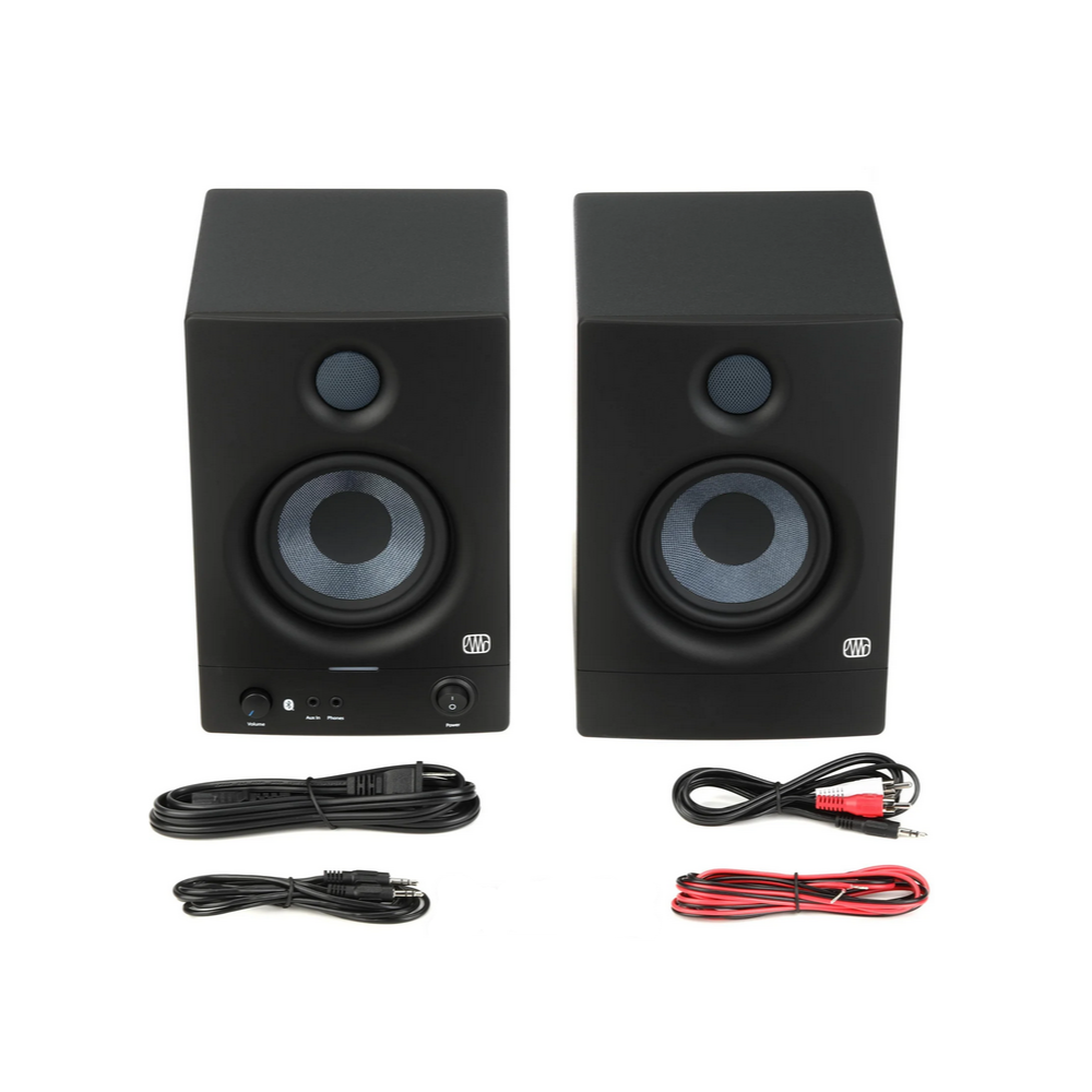 Como todos os monitores de referência de mídia PreSonus, o Eris® 4.5 BT oferece audição consistente e precisa. Seu design elegante os torna uma adição bem-vinda a salas de estar, configurações compactas de home theater e plataformas de jogos, e sua resposta de frequência suave e uniforme garante que sua música — e a de todos os outros — soará incrível.